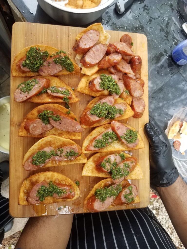 Our food service includes more than 500grms of delicious cuts per person of our exclusive selection of meats (imported when available). Our full service asado includes, Argentinian chorizo, morcilla (blood sausage) and our world-famous meat empanadas (hot pockets), sweetbread, chitterling, outside skirt, flap meat, sirloin cap and chicken, all accompanied with grilled potatoes, potato salad, Argentinian green salad, bread, and our exclusive chimichurri dressing (Do not include liquor and beverages).